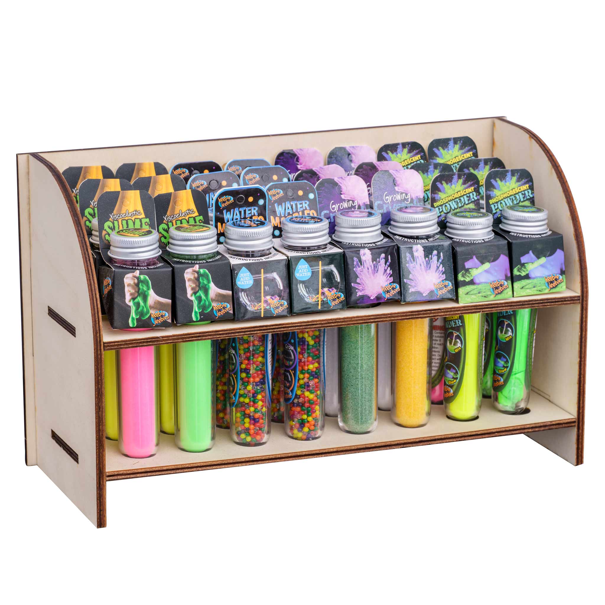 Get a mix of our Test Tube experiments containing: 12 x Ferrofluid 12 x Bouncing Balls 12 x Slime 12 x Snow