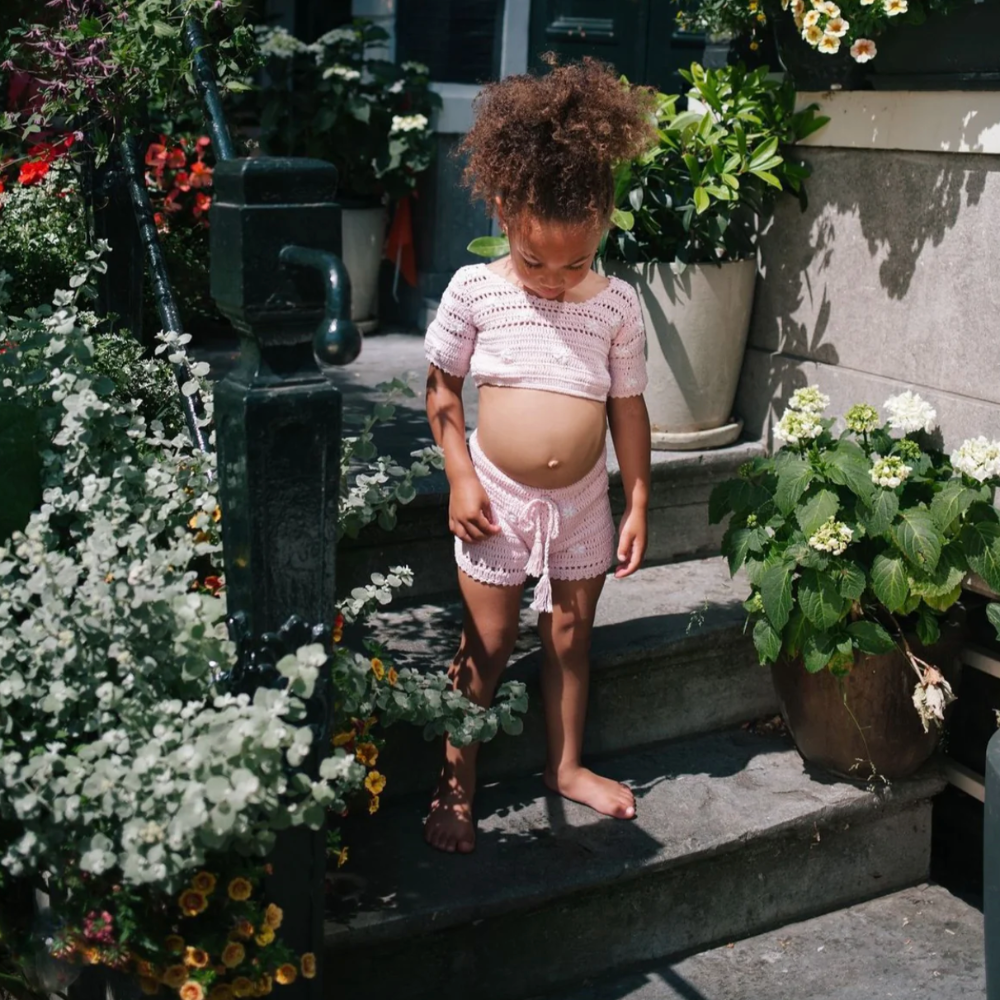 Knitted from 100 % cotton. Made by our beautiful artisans in Bali, Indonesia. Beautiful daisies details. True to size. Handwash only.