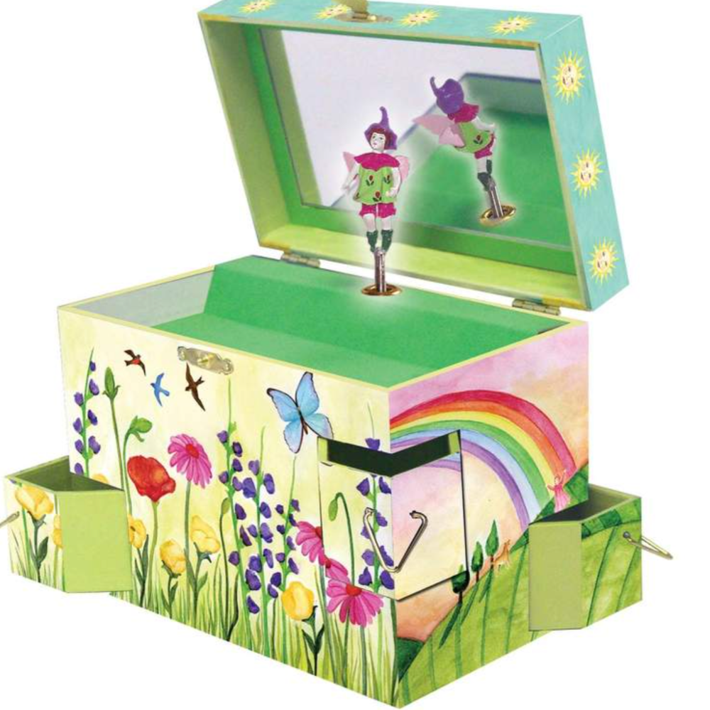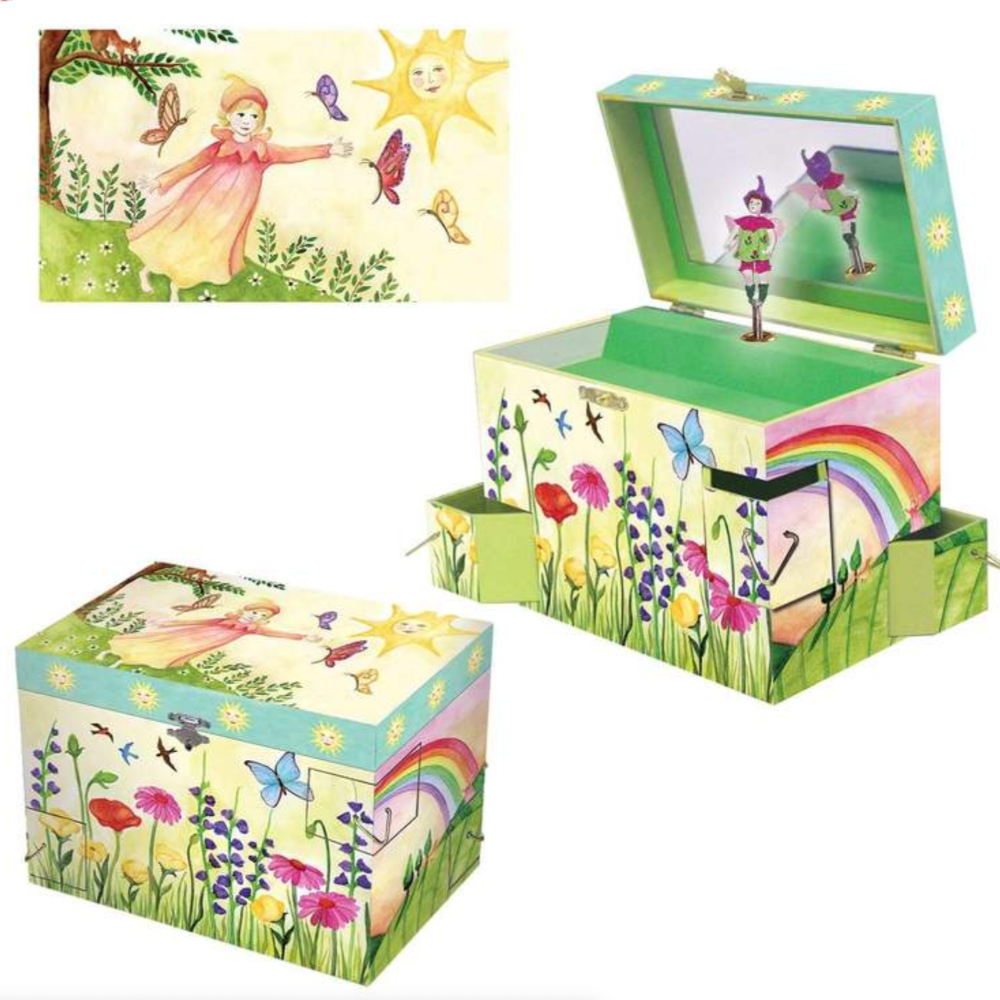 Open the lid of this gorgeous children’s music box by Enchantmints to see the pixie twirl to the tune of Funiculi Funicula. A magical place to store tiny treasures, with four secret drawers and beautiful, unique watercolour illustrations, this music box will be cherished for many years.