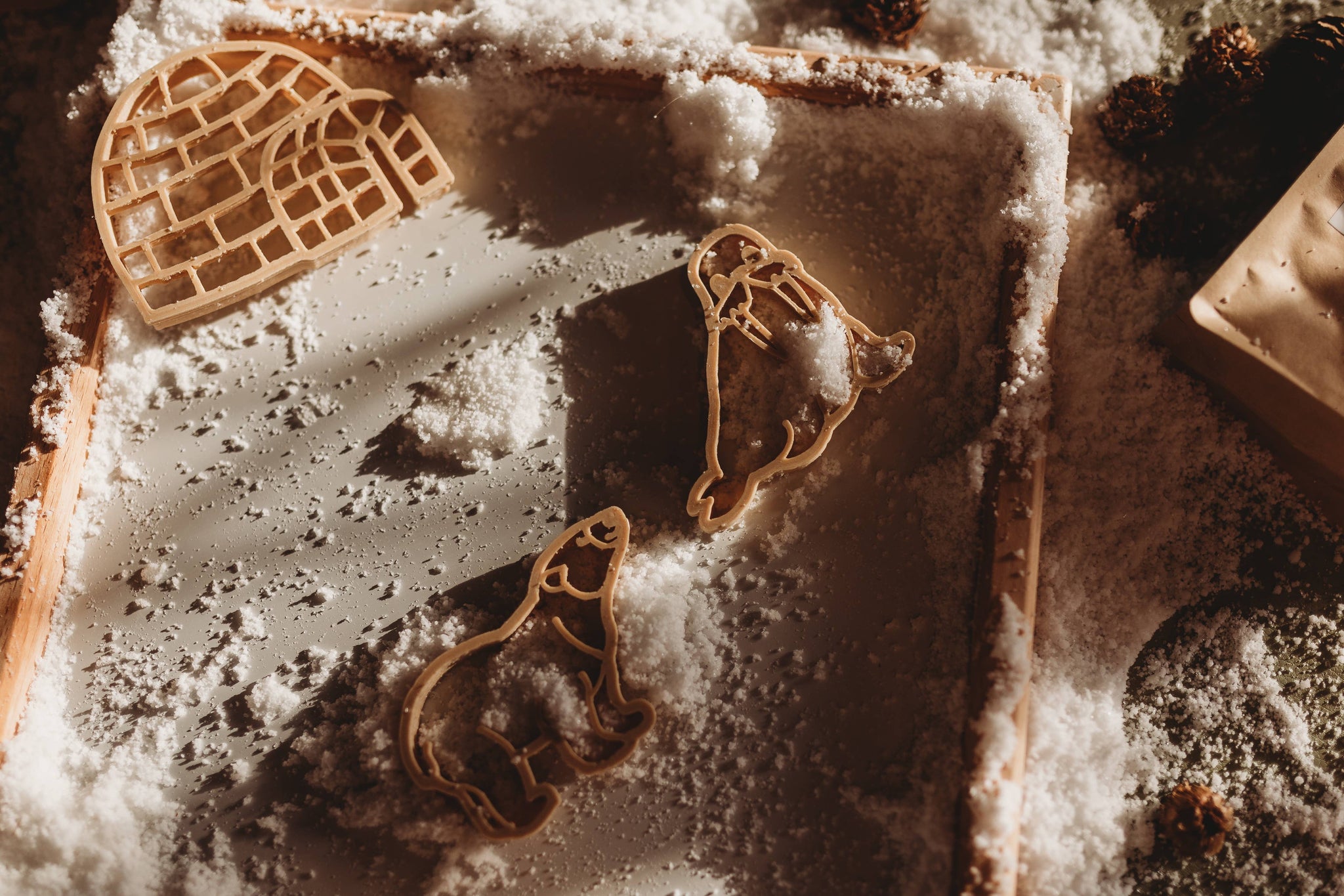 Explore polar play with this charming Arctic Cutter Set featuring animals and shapes inspired by the snowy north. A perfect eco-conscious playdough tool set for sensory learning and imaginative play.