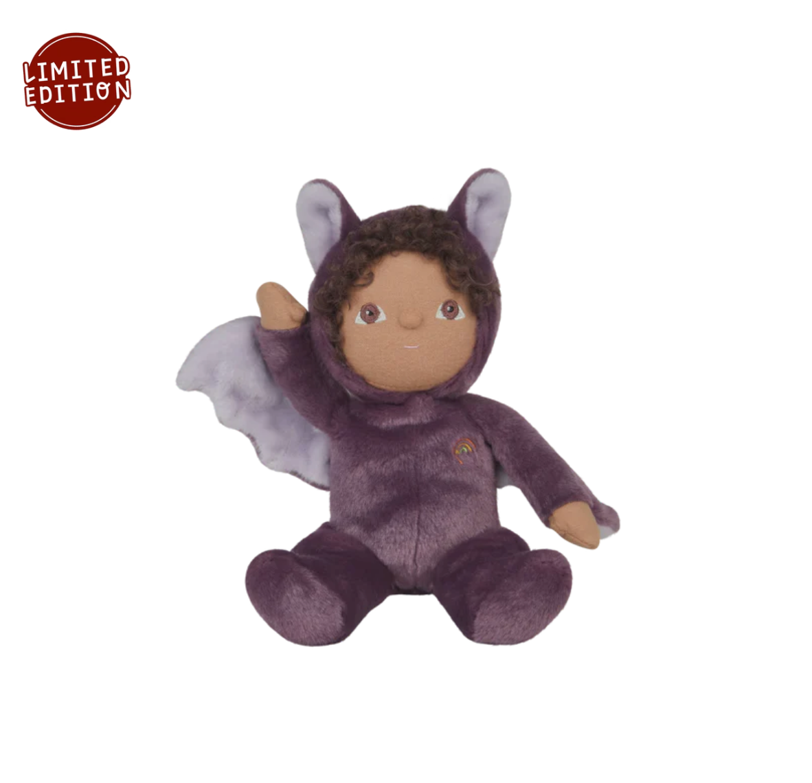 Peek under his wings or into his softly curved ears and you’ll find a little Halloween magic – they glow gently in the dark, guiding him through starlit skies and cozy bedtime stories. Bowie loves swooping low over the forest, playing hide-and-seek in the shadows, and snuggling in close when the night gets chilly.