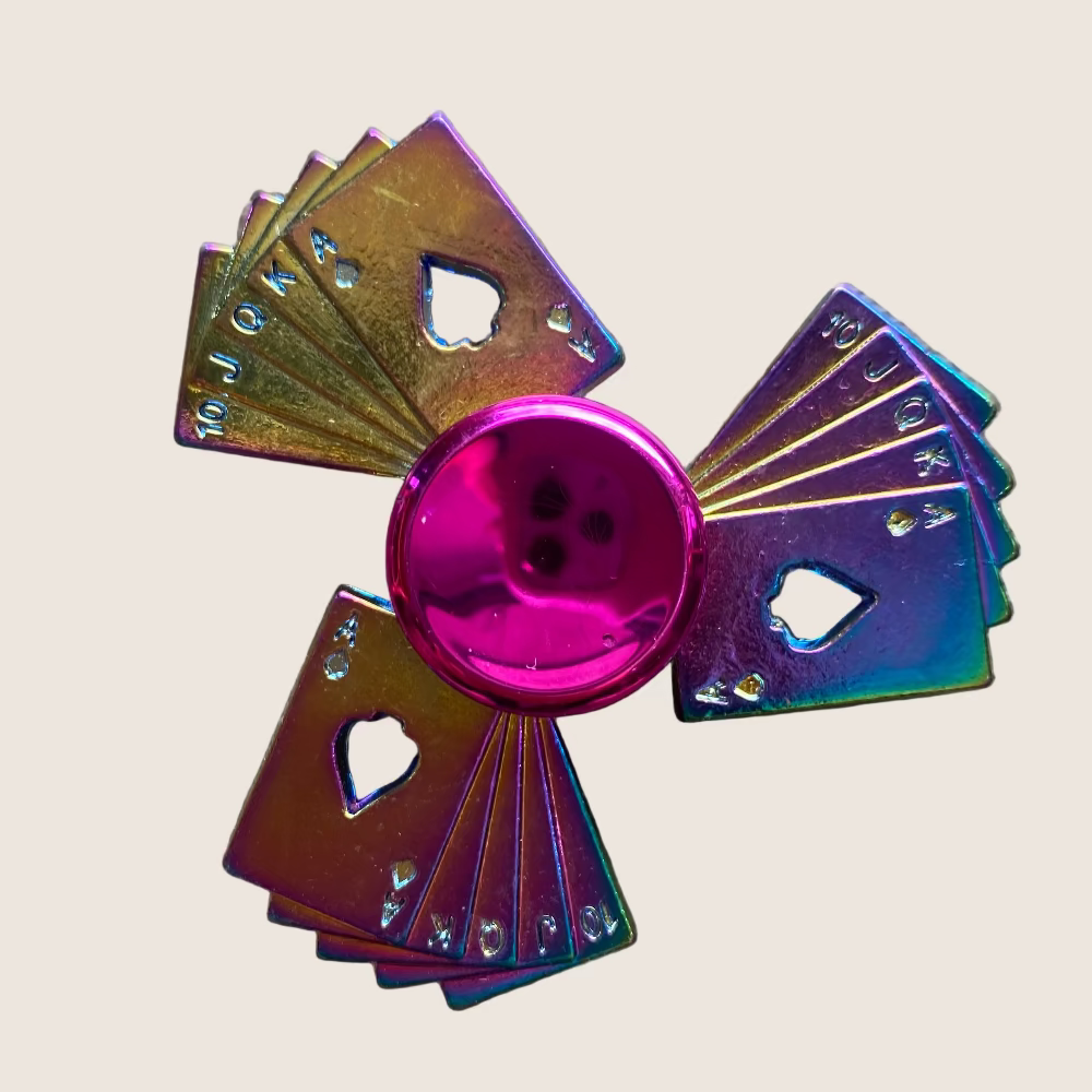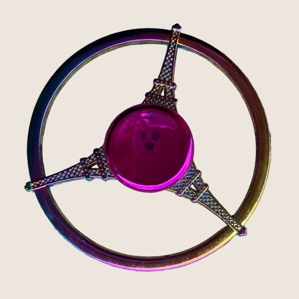 So many other ones too... Spin the dice or watch the spider spin, Mortal Combat dragons, Eiffel Tower and many more... so many fun options. High quality iridescent rainbow metal that literally never stops spinning.